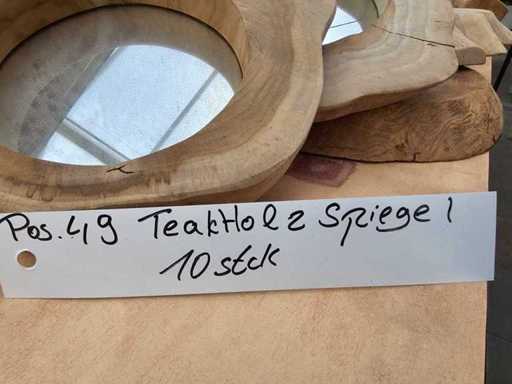 Îmbunătățește-ți casa cu o atmosferă naturală și caldă cu acest set exclusivist de 10 oglinzi din lemn de tec lucrat manual. Fiecare oglindă este o piesă unică, realizată din felii solide de lemn de tec care evidențiază perfect fibra naturală și modelele individuale de creștere ale copacului. Marginile organice și textura robustă fac din aceste oglinzi un adevărat punct de atracție pentru iubitorii vieții naturale. Ideal pentru un colaj impresionant pe perete sau ca accente individuale elegante în diverse camere.