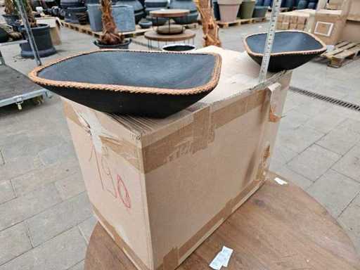 Set exclusiv de 2 boluri decorative - Negru cu margine din ratan