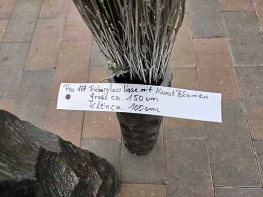 Set exclusiv de 2 vaze din fibră de sticlă cu flori artificiale argintii