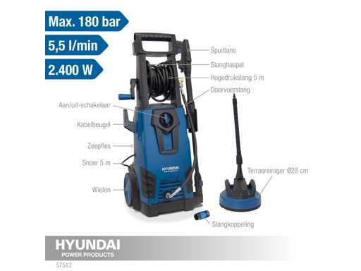 • Această mașină de spălat cu presiune HYUNDAI foarte puternică are o putere de 2.400 W, livrează 5,5 litri de apă pe minut și face acest lucru cu o presiune maximă de lucru de 180 bar. Aparatul de curățat cu presiune înaltă are un sistem automat de pornire/oprire. Asta înseamnă că motorul se activează doar când pornești pistolul de pulverizare, economisind multă energie și apă în același timp.