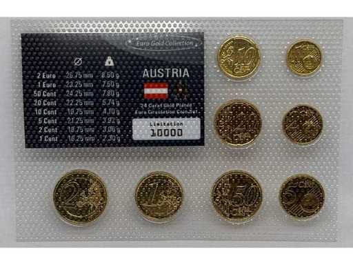 Setul de monede Austria Euro-Gold-Collection – placat aur de 24 carate - Limitare 10.000