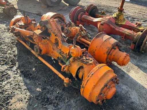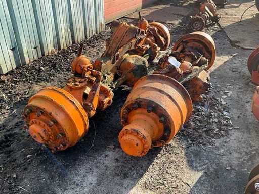 1x axă de direcție frânată + antrenată, suspensie pendul, lățime a axei 2500 mm, 1x axă fixă frânată + antrenată, lățimea axei aproximativ 2300 mm, lățimea flanșei de montare în centru/centru aprox. 950 mm
