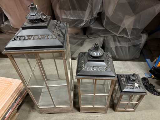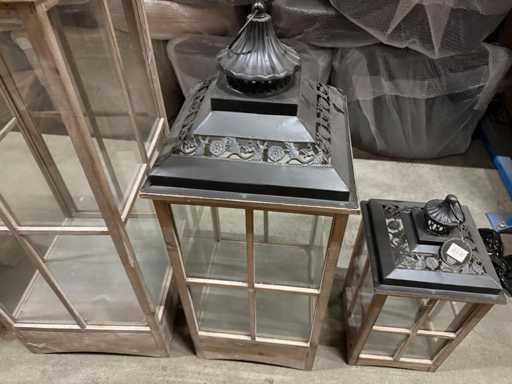 Acest set de trei felinare decorative aduce instantaneu atmosferă casei sau grădinii tale. Felinarele au o combinație elegantă de lemn, sticlă și lucrări ornamentate din metal. Fiecare mărime se potrivește perfect cu un loc diferit, de la sufragerie la verandă. Sunt ideale pentru lumânări sau iluminat LED. Un decor complet și fermecător, care emană căldură și confort.