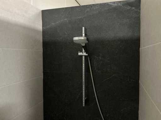 Consisting of a shower tray 87x87cm, door 88x200cm and a Hansgröhe Croma hand shower with mixer tap.
