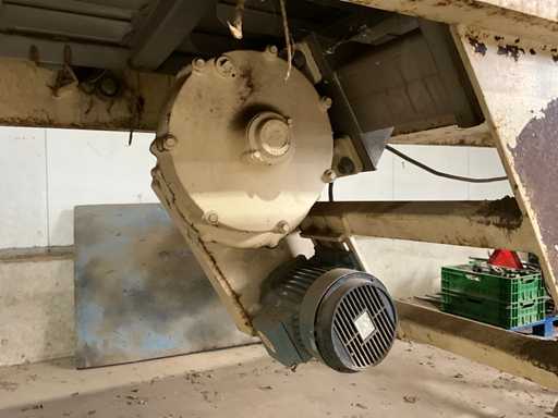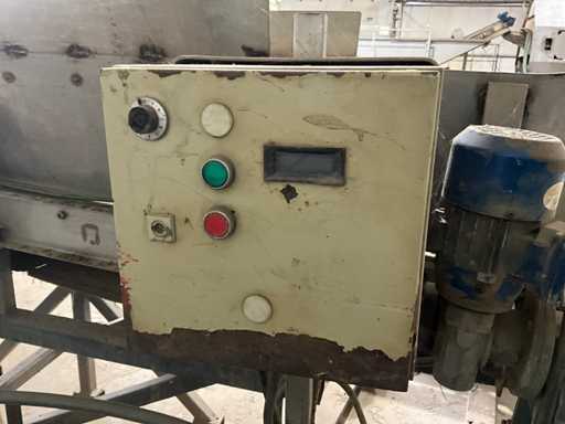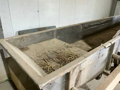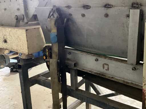 Vibrating table 3150x600mm, 290mm deep, discharge width 350mm, conveyor belt with belt width 630mm, 1600mm long, 400V