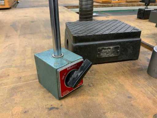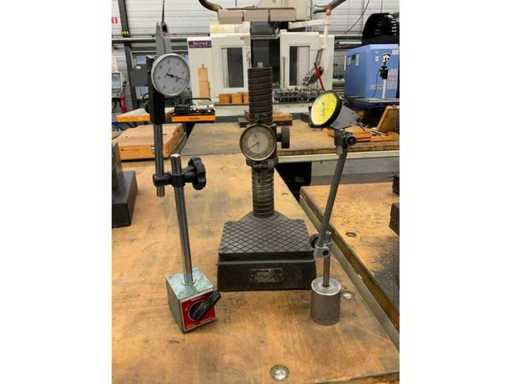 Constă din dimensiunile mesei de măsurare aprox. 15x22 cm și un indicator cu cadran, suport magnetic cu sondă rotativă și sondă pe suport magnetic