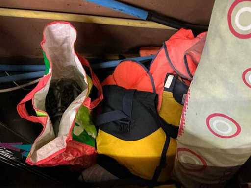 2 seturi de schiuri nautice; diverse veste de salvare; accesorii pentru slalom; fără cutie de oțel