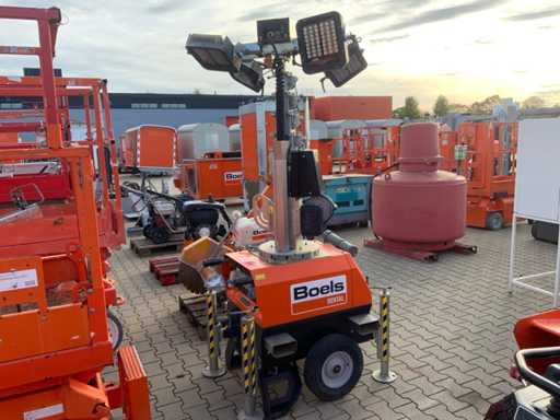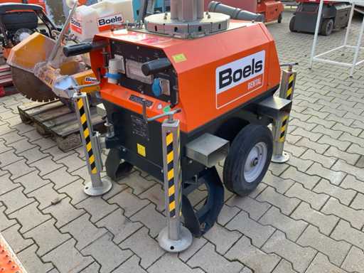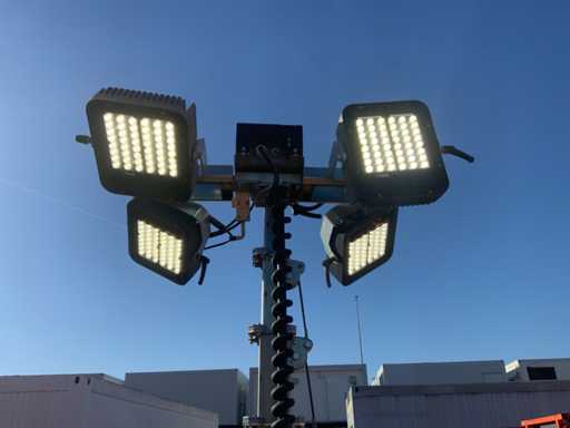 mobil; 4x lampă LED 230 Watt; 230 volți; înălțimea maximă a catargului de aproximativ 7 metri; echipat cu fante pentru furci pentru stivuitor; 4x picior de nivelare extensibil; ridicarea ochiului; mobil; starea de lucru;