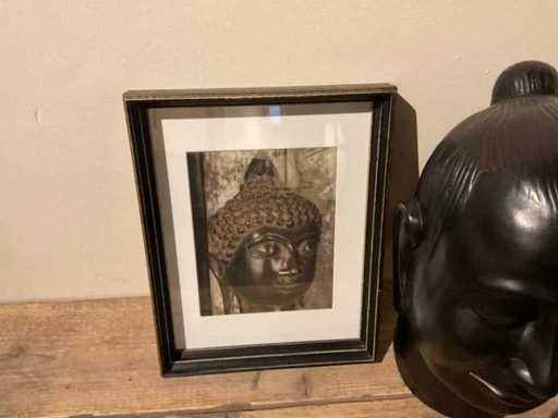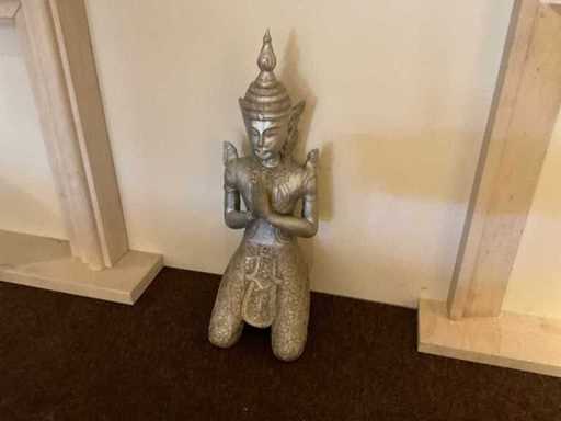 Statui ale lui Buddha și o decorațiune pe perete