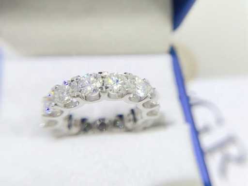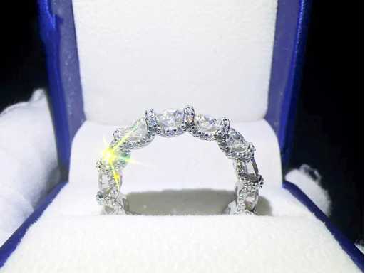 strălucitori Piatră prețioasă: Moissanit; Tăietură: Tăietură genială; Greutate (carate): 3,50 carate; Culoare: E-F; Puritate: VVS; Calitatea tăieturii: Foarte frumoasă; Piatră prețioasă (secundară): Moissanit; Tăietură: Briliant; Greutate (carate): 2,00 carate; Culoare: E-F; Puritate: VVS; Calitatea tăieturii: Foarte frumoasă; Bijuterie: Inel; Brand: Harmony; Greutate: 5,3 uncii; Dimensiunea inelului (realizat la comandă*): 54 (17,25 mm); Material: Argint sterling de calitate superioară de calitate platinată (925); Starea: Nouă; Ambalare: cutie de bijuterii sau cutie de catifea; Explicație: Calitatea a fost preluată din raportul aferent produsului. Evaluarea este o evaluare a unui comerciant certificat de diamante, bazată pe prețurile pentru consumatori; Informații suplimentare: Greutatea măsurată a pietrelor prețioase este în funcție de dimensiunile diamantelor; Preț pentru consumatori: 1.000 €