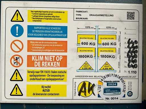 Constând din 3 coloane fiecare, dimensiuni: H6020 x W3060 x L3450 mm, cu 48 de grinzi