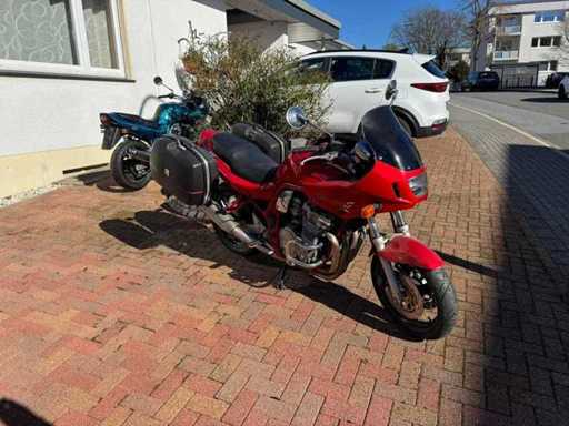 Suzuki GSF 600 S (Bandit) cu sistem de genți. Următoarele lucrări de întreținere au fost efectuate proaspăt: schimb de ulei, inclusiv filtru de ulei și bujii noi. O baterie nouă este inclusă. Vehiculul prezintă semne de uzură corespunzătoare vechimii sale și nu prezintă TÜV actual. Din cauza duratei de viață, este probabil necesară curățarea carburatoarelor