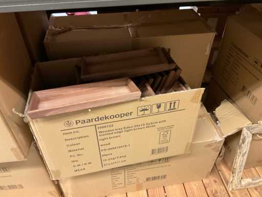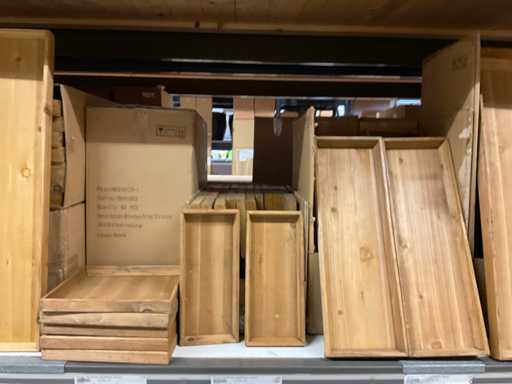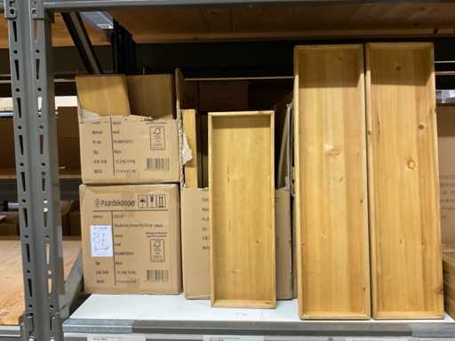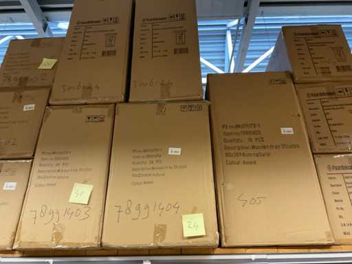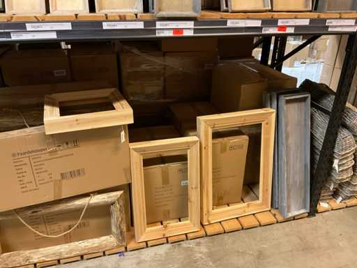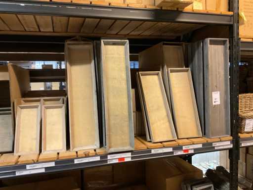 Constând din diferite dimensiuni, culori și tipuri de tăvi și rame din lemn, pentru decorare, toate în 2 secțiuni de rafturi.