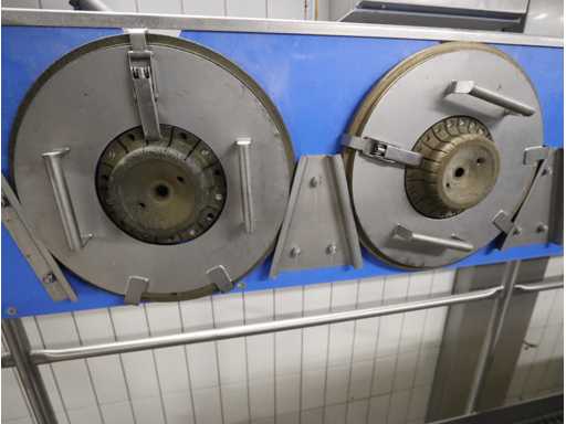 Diametrul cuțitului aproximativ 400 mm, echipat cu bandă transportoare, lungime aproximativ 3000 mm, cadru din oțel inoxidabil 3100x650x900 mm, 1,5 kW, inclusiv 2 lame de rezervă, fără platformă și podea de rețea