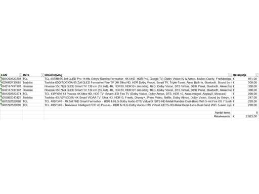 Aceasta se referă la un lot de televizoare returnate de la un mare retailer online. Petrecerea este formată din televizoare de diferite dimensiuni. Număr de piese: 8. Valoare de vânzare în retail: €2923,- Televizoarele nu funcționează și pot fi folosite pentru piese. Vino în ziua vizionării pentru a înțelege motivul revenirii. Vezi fotografiile pentru lista conținutului.