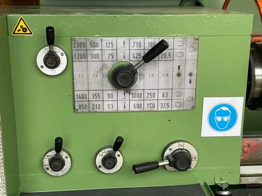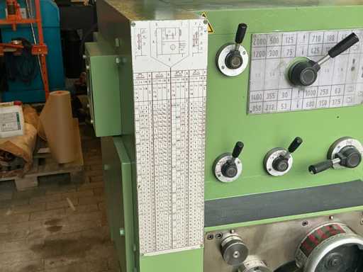 1200mm între centre, capul central 240mm, suport superior 145mm, adâncitură 255mm. Diametrul pivotului 440mm, pasajul axului 45mm. Viteza axului: minim 26rpm, maxim 2000rpm.