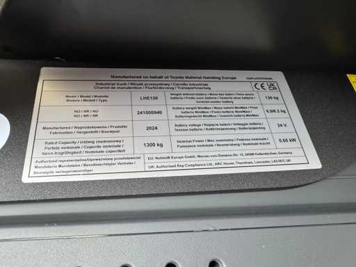Capacitate nominală 1300kg, înălțime de ridicare 195mm, capacitate maximă a bateriei: 36Ah, tensiune 24V, viteză maximă 4,8km/h, certificat CE prezent