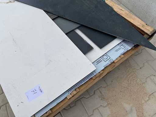 Various rest pieces, lengths up to 3m, widths up to 80cm, including 3x pallet 3050x1220mm