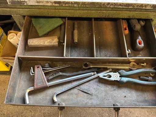 Voorzien van: handmatig bedienbare in hoogteverstelbare aanvoer rollenbaan, 1400x6000x1330mm, werkbank 1270x600x940mm, inhoud van de werbank inbegreoen