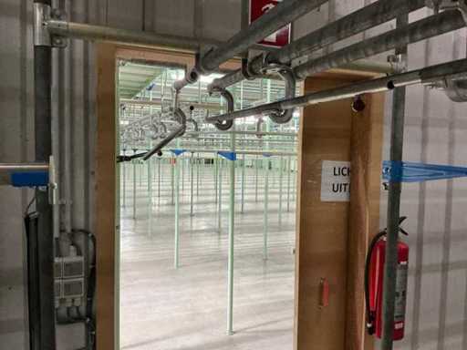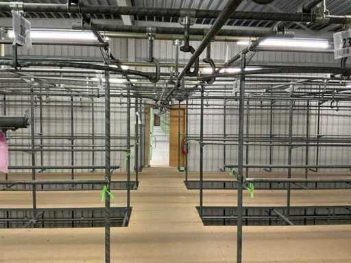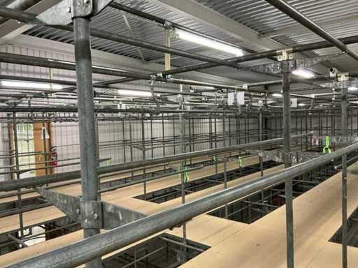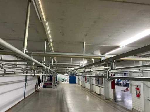 4. Second two-level tube steel mezzanine construction with trolley rail system.