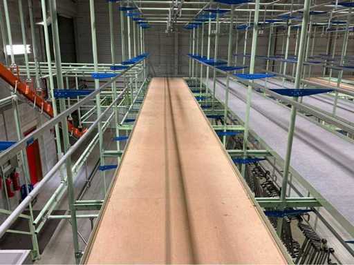 - Including driven inclined overhead transfer rail (vertical transport section between ground floor and first floor).