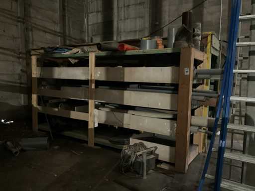 Constând din diferite diametre, 55-200 mm, într-un raft de depozitare din lemn