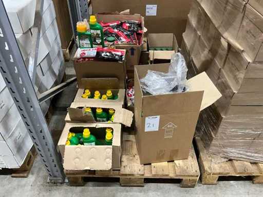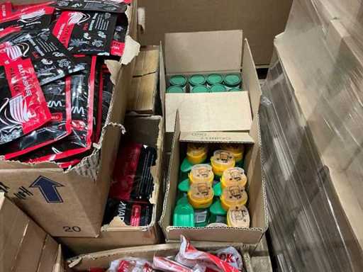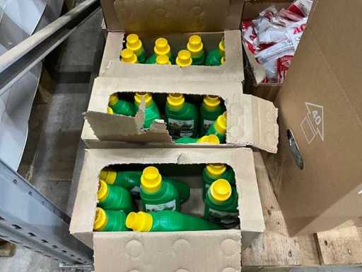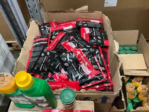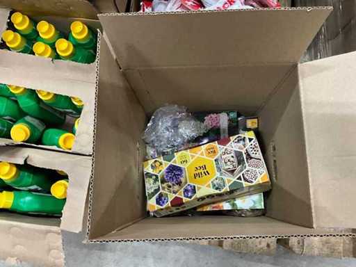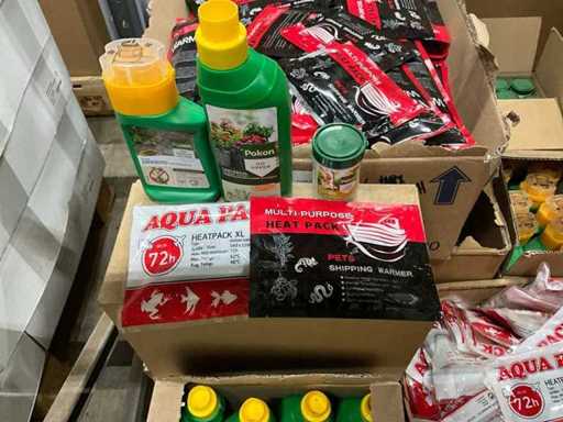 Un palet cu hrană pentru plante, pachete termice și concentrat anti-buruieni
