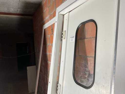 Ușă batantă din plastic. Complet cu carcasă de aluminiu demontată cu clic și chambrant-uri. Ușă: h 2050mm x br. 870mm