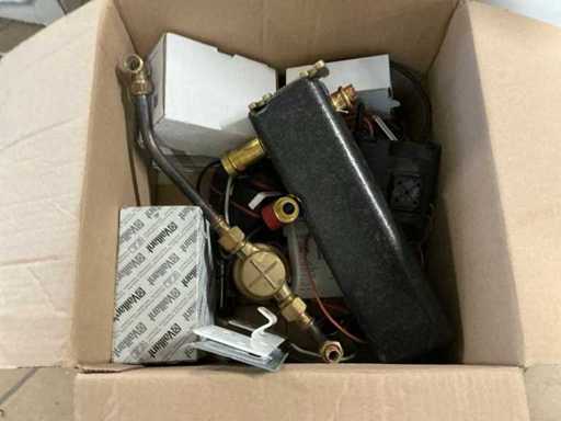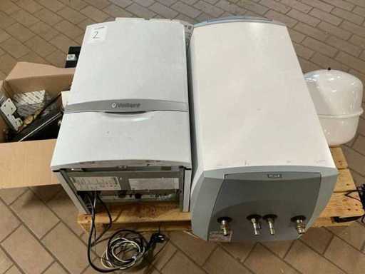 Constă din pompa de căldură VAILLANT 2020 de 1,1 kW, cazan NIBE PCU-R 80 (80 litri), rezervor de expansiune REFLEX N18, placă de distribuție EATON, modul de control VAILLANT, modul de control AI VWZ VWZ, diverse materiale de montare
