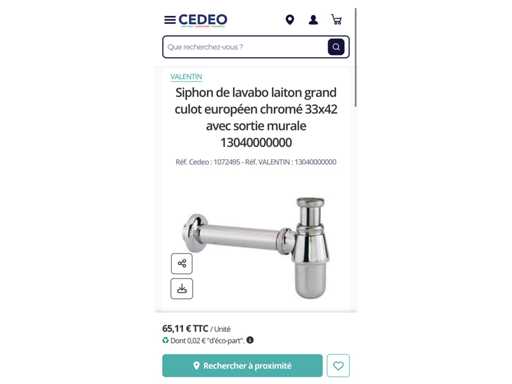 VALENTIN (X24) - Sifon de chiuvetă din alamă cromată cu priză de perete