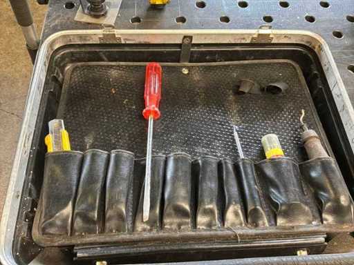 Various hand tools including: 1x blind rivet set, 1x tool case with contents.