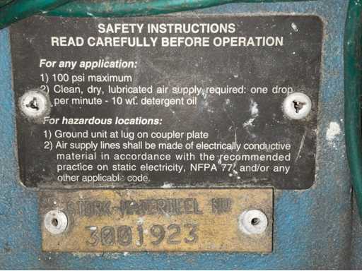 acționat pneumatic; pentru utilizare în zone rezistente la explozie; Carcasă din plastic; diametrul conexiunii pentru ventilație flexibilă 300 mm; mâner de transport;