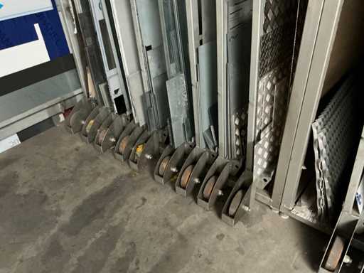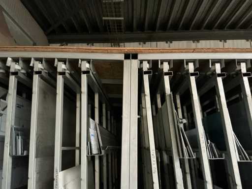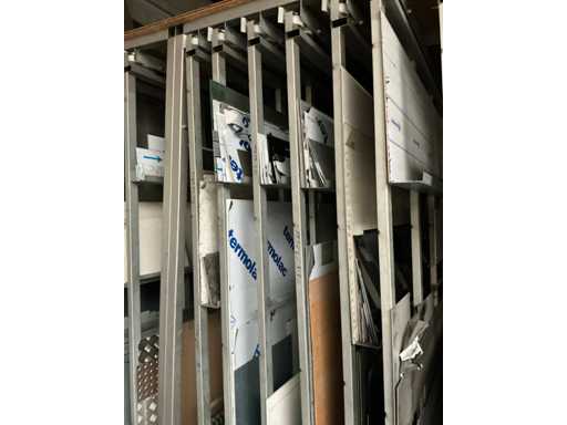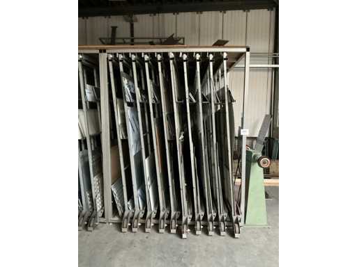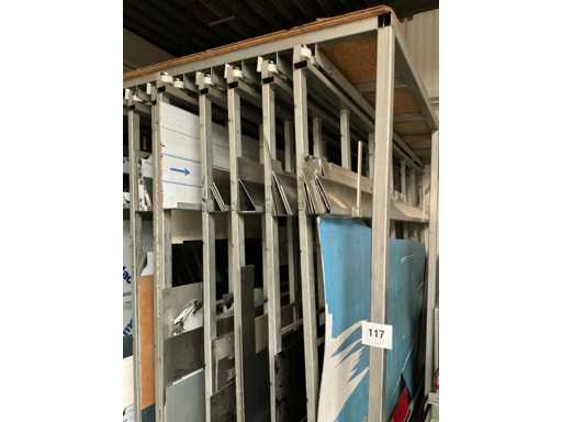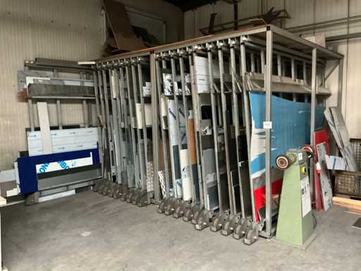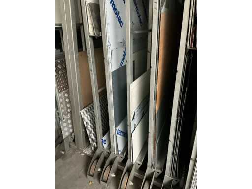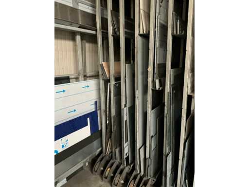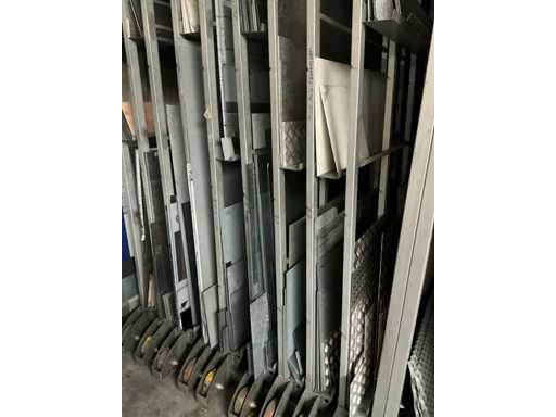 Equipped with 10 roll-out record holders each approx. 300 x 250cm, Containing some various aluminium plates in various sizes and designs