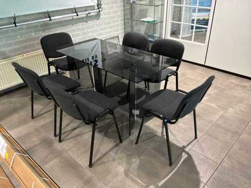 Dimensiunea blatului mesei: L140 x L 70cm. Include 6 scaune, 1 banner, 2 exponate, 1 banner și pliante rulate, 1 vitraliu