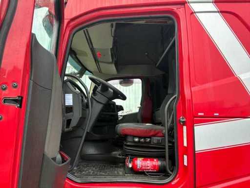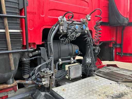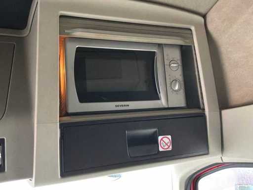 Indică defecțiune a sistemului de aer (nu cauzează probleme la volan) * echipat cu pilot automat, scaune încălzite, geamuri electrice, oglinzi exterioare încălzite, aer condiționat / climatizare, frigider, cuptor cu microunde * greutate maximă la tractare 41779 kilograme * putere motorului 345 KW / 470CP * vehiculul este echipat cu cusături publicitare