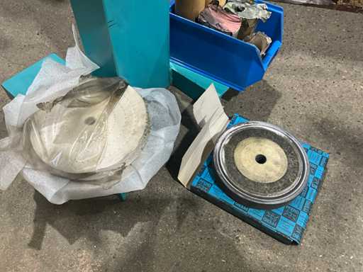Inclusiv 4 discuri de lustruit și accesorii, greutate estimată aproximativ 80 kg, vezi fotografii pentru mai multe detalii