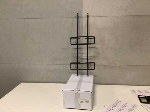 Dimensiunile raftului de duș. 75 cm înălțime, lățime 28 cm. Negru.