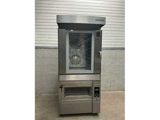 cuptor de panificație duo, format din: cuptor Euromat 64 L cu 10 niveluri, cuptor Ebo 68-M cu platformă de cuptor cu dimensiune wxdxh 59x91x22 cm, cu bază mobilă și echipat cu hotă extractoare
