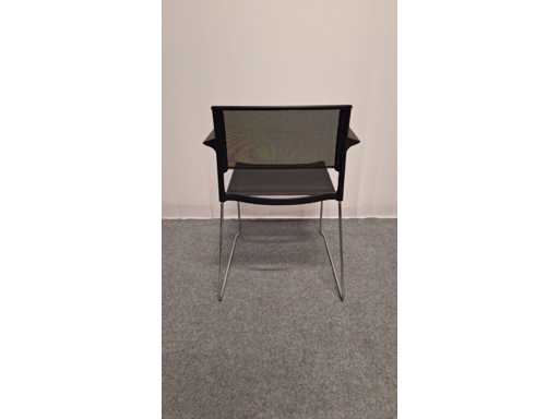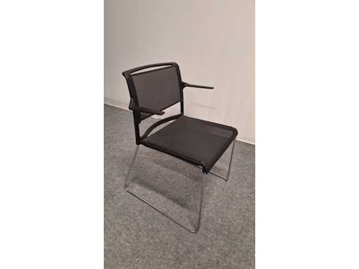 bază din oțel metalic placat cu crom lucios, șezut și spătar în tapițerie netweave negru, cotiere din plastic negru, în stare bună