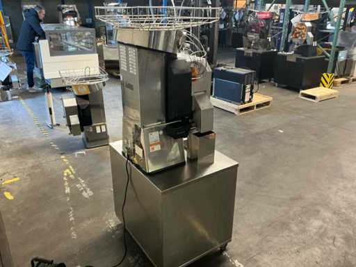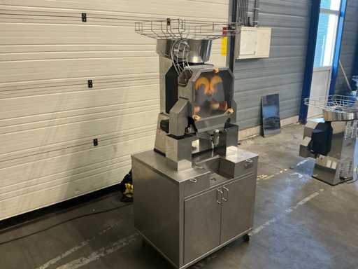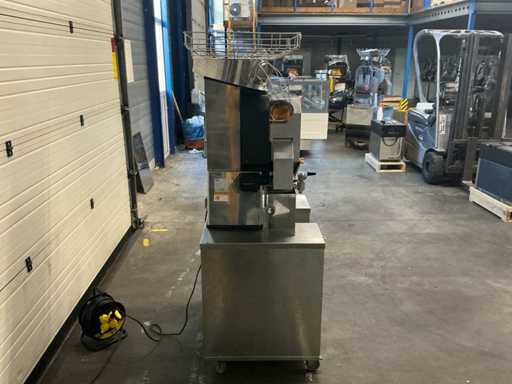 În prezentare: Zumex Speed S+ Plus este o presă profesională cu o capacitate de aproximativ 40 de fructe pe minut, funcționând la 220–240 V / 50–60 Hz cu aproximativ 460 W putere, echipată cu descărcare automată a pulpei, potrivită pentru fructe între 45–95 mm și cântărind în jur de 120–125 kg, cu dimensiuni de aproximativ 805 × 708 × 1774 mm. Anul construcției 2019.